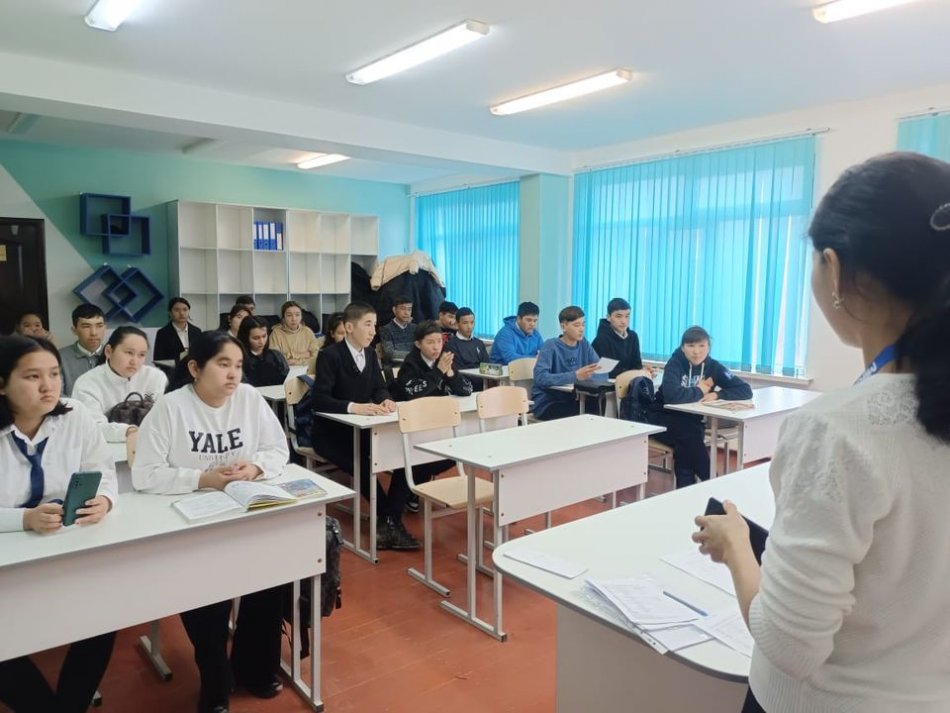 Шымкент қаласы білім басқармасына қарасты №122 Ақжар жалпы орта білім беретін мектебінде оқушылардың болашақта мамандық таңдауда қателіктер жібермеу мақсатында кәсіптік бағдар беру педагогы А.К. Акпарованың ұйымдастыруымен 9-11 сынып оқушылары арасында "Кәсіби таңдауым- өмірлік қалауым" тақырыбында жоғарғы, арнаулы кәсіптік білім оқу орындарының мамандарымен кездесу өткізілді. #тәрбие_шымкент_әдістемелікорталық