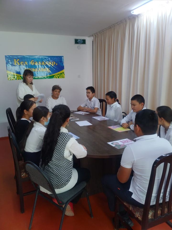 Шымкент қаласы білім басқармасына қарасты №122 Ақжар жалпы орта білім беретін мектебінде оқушылардың мәнерлеп айту дағдыларын қалыптастыру, тілдерін дамыту,сөздік қорларын байыту,ойлау,есте сақтау, қазақ тіліне деген сүйіспеншілігін, ынтасын арттыру, шығармашылыққа, ізденімпаздыққа баулу мақсатында Республикалық бірыңғай "Жас Ұлан" балалар мен жасөспірімдер ұйымы мүшелерімен "Кел, балалар, оқылық!" тақырыбында дөңгелек үстел өткізілді.